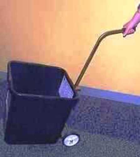 An Australian made electro plated steel two wheel trolley. The unit consists of two solid rubber wheels attached to a metal crosspiece. A fixed handle with a slip resistant grip has a height adjustable lifting lever that hooks under the lip of the recycle bin. The trolley may be helpful for those who experience difficulty with bending and lifting. The welded joints and spring mechanism have been galvanised to prevent rusting.