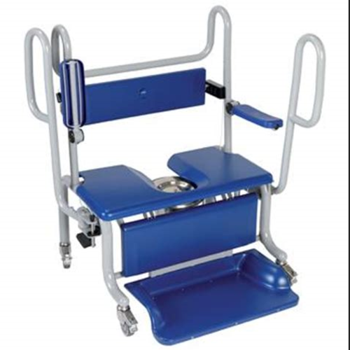 The Carmina has the same features as the Carmina basic but also features attendant Push poles and foot rests. Push poles assists carer's when maneuvering the chair. More mobile patients can use the push poles as support when sitting down/standing up. Poles fold away to allow easy lateral transfers for patients. Adjustable foot rest provides comfortable and safe sitting position and good access for transfers with different types of passive lifters. Foot rests can be raised for comfort during transport or rested on the floor which provides more stability for more mobile patients during transfers.