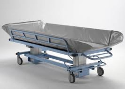 A battery operated height adjustable mobile shower trolley in which the person can lie full length. The trolley can be tilted for improved drainage. The trolley can be used for shower