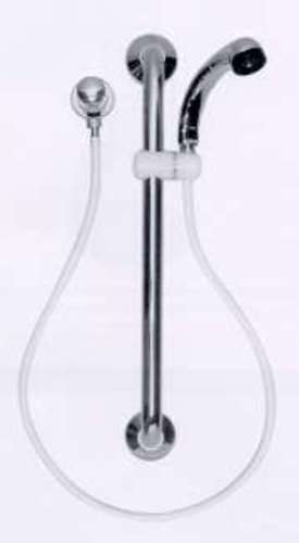 A wall mounted shower set for people with special needs. A combined handshower and grab rail set which conforms to AS1428.1 2001. It consists of a 32mm diameter stainless steel rail