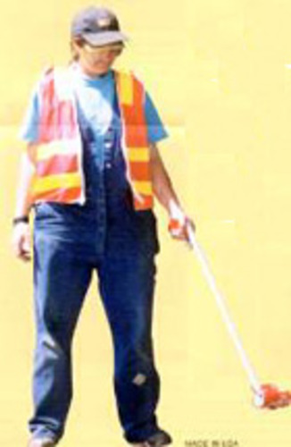A lightweight reaching aid designed for picking up litter including sharps and cans.