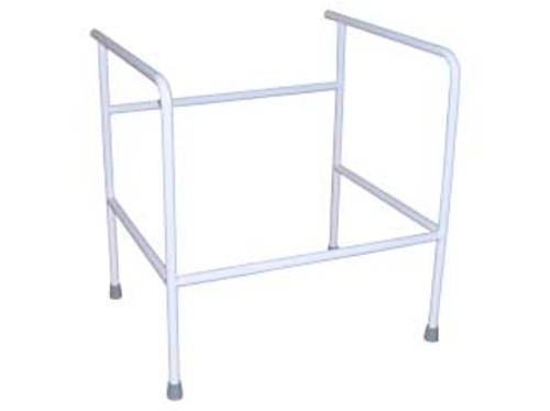 A height adjustable frame which fits around a toilet and assists the user to get on/off the toilet by providing armrests on each side.