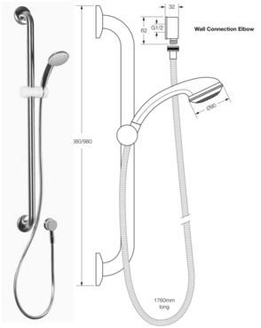 Finished in chrome. 5 Year Warranty on handshower/ 12 Month Product Warranty. WELS 3-Star (9 l/min). Suitable for any hospital care or special needs situation.