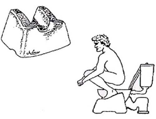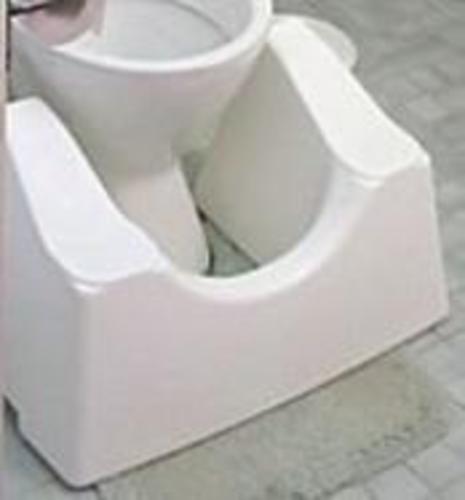 A polythylene (plastic), moulded platform which fits around the pedestal of an existing toilet to allow the user to assume a full squatting posture when using the toilet.