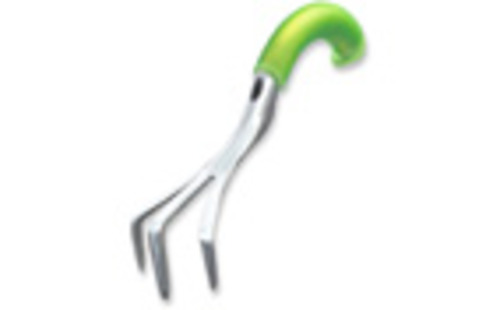 Cultivator - three prongs bent at 90 degrees from the shaft, designed for loosening the soil.