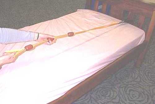 The Tiger Tail is a hand held bed attachment designed to assist the patient who finds it difficult to sit up in bed. Three oval-shaped slip resistant grips are attached at intervals along reinforced webbing. A loop of webbing at one end is for the user to hold onto and the adjustable strap at the opposite end is tied around the foot board or bed legs. Length can be customised.