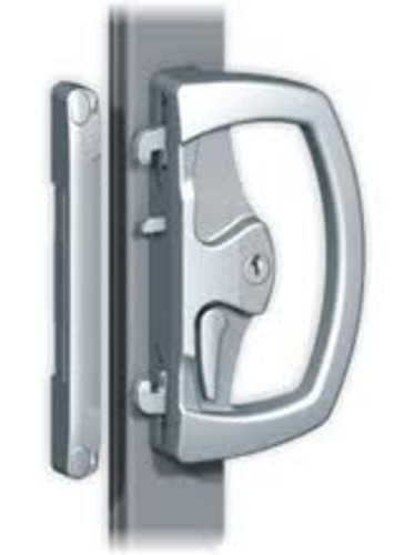 A sliding door deadlock with a large closed D handle. The lock is set back to provide additional knuckle clearance for turning the key. It can be mounted either way for a right or left hand pull to open. The locking lever is longer and sunk into a contoured cut out area. Available in a range of powder coated finishes.