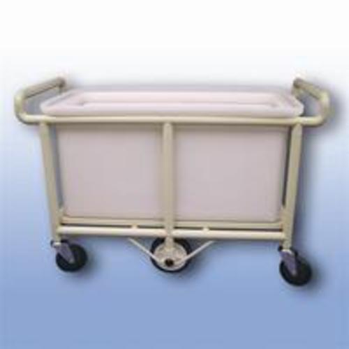 A mobile laundry trolley with a spring loaded mechanism to lift heavy linen bags on and off the trolley. It is mounted on a six castor configuration and features a rust proof frame made of PVC and nylon. The spring is made of high tensile strength steel. Comes in three models.
