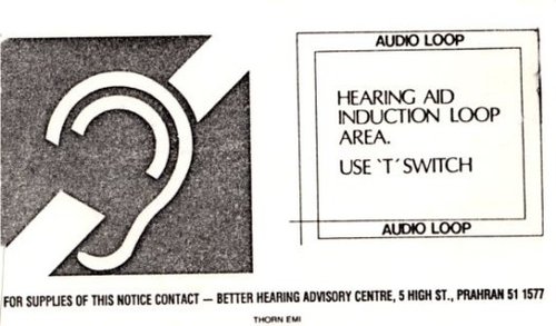 A range of plastic, self adhesive signs which have the international deafness symbol and the necessary information advising an area to be installed with an auditory loop system.