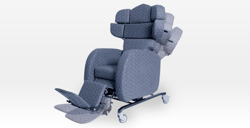 The chair has four swivel castors with rear braking mechanism. It can be reclined for sleeping or side lying. A waterproof lining, lapstrap and tray are available.