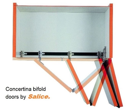 A screw on hinge system which allows bi-fold doors to open to one side of the cabinet.