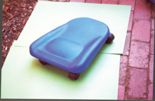 A range of plastic scooter boards on castors designed to allow a child to move freely while in a kneel, sit or lye down position. The castors rotate 360 degrees.