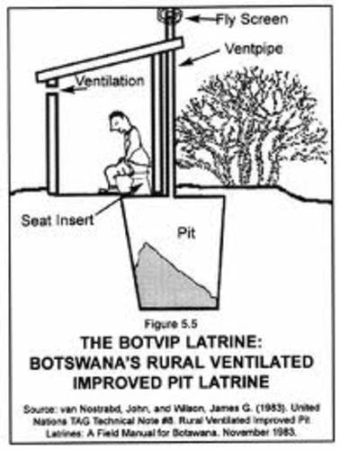 A concrete and timber latrine that is suitable to use areas where there is no water available.
