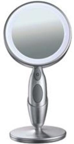 A mirror with halogen light with standard magnification on one side and 3x magnification on the reverse side. The mirrors are portable.