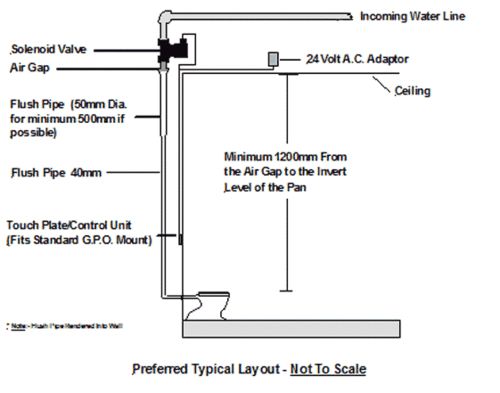 A floor mounted pan with range of touch plate and radar sensor taps and flush activators.