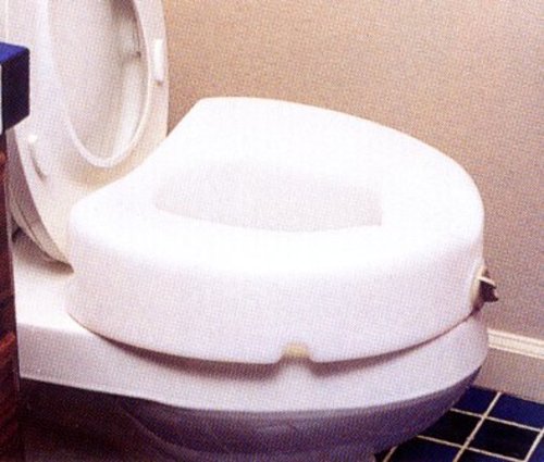 The toilet seat has a front cut away with slight seat contouring. Used with the toilet seat raised. White in colour.