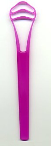 Cleaning the side of the tongue, place the tongue cleaner with the flat surface towards the side of the tongue and slide forward, repeat on the other side. Clean the tongue daily.