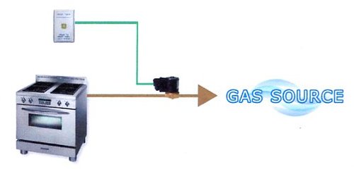 This product is designed to stop gas flow to a stove after a specified time has expired. The kit comprises of a gas valve and a timer switch.