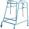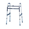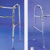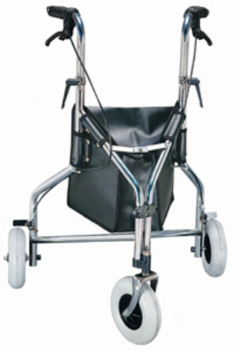 A steel framed, height adjustable walker with three pneumatic tyres and push to lock hand brakes. The walker folds via an upwards release of a hinge at the front centre of the frame A shopping bag is standard.