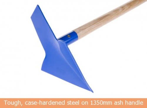 A stainless steel garden tool consisting of a pointed scoop with a centrally mounted handle. It is designed to be a combination of a trowel and a shovel for a variety of uses such as weeding, digging, shoveling and trowelling.