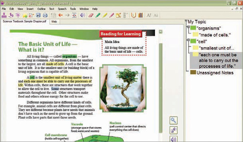 Read:OutLoud software provides text-to-speech which allows text content to be read aloud. It highlights paragraphs, phrases and words while text reading aloud. It is compatible with NIMAS, PDF, Rich Text Format (RTF), Text Files (TXT), XML, HTML, DAISY 3 , Microsoft “Save As Daisy”, Bookshare files and Internet/Web Browser. Read:OutLoud includes study tools such as eHighlighters, bibliographer and reading templates.