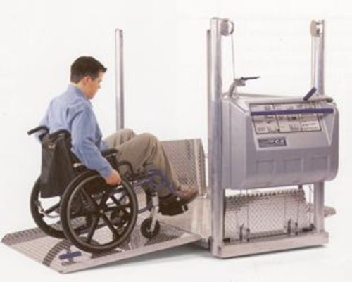 Model Mobilift: Portable wheelchair lift. Manually operated. Self sufficient, no power source needed.