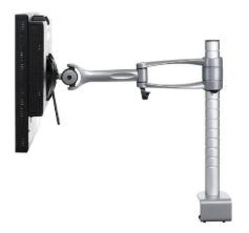 A lightweight fully adjustable system made of die cast aluminium and glass reinforced acetyl plastic. Allows the monitor to tilt, rotate and pan. Some height and reach length adjustment available. Available in brushed silver only.