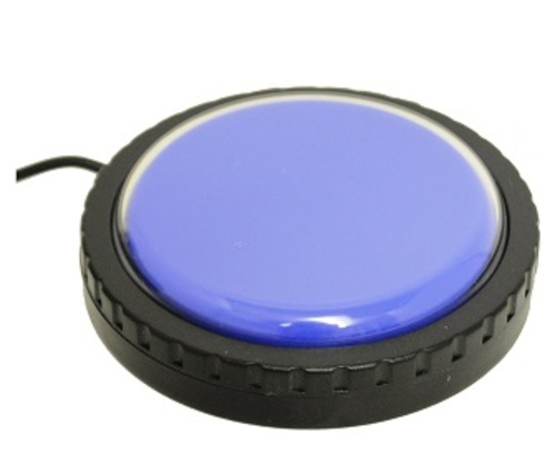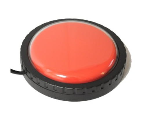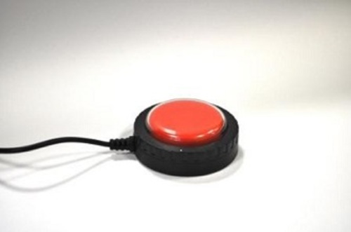 The Lib Switch consists of a coloured activation surface with removable cap within a black plastic housing. It comes in three sizes; the Lib Switch, Mini Lib Switch and Big Lib Switch. The lead measures 1400 mm and has a 3.5mm jack plug. Colours available are yellow, green, blue, or red. The removable cap allows a symbol or picture to be secured to the Lib Switch.