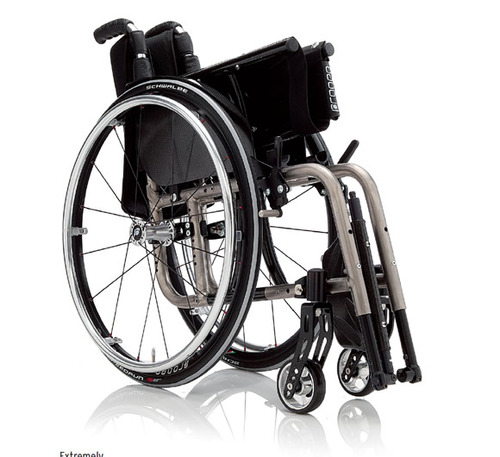 A lightweight, folding manual wheelchair which is available in aluminium or titanium. Provides multiple adjustment options including seat height, front castor position, backrest height and legrest length. Other options and accessories are available. Available in 4 different models including a paediatric (children's size) version.
