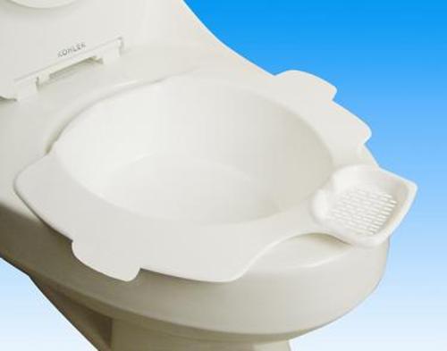 A contoured, plastic bowl which fits into the top of most toilet bowls. Designed for soaking the buttocks area.