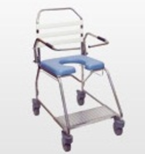 An attendant propelled, mobile, fixed height, shower / toilet commode with a closed cell foam toilet seat and a corrosion resistant heavy duty stainless steel frame. Designed to enable a user to be taken to a level access shower area, and over a toilet, by an attendant. Available in one size and three models. Options are available. Can be fully customised, including complex custom seating.