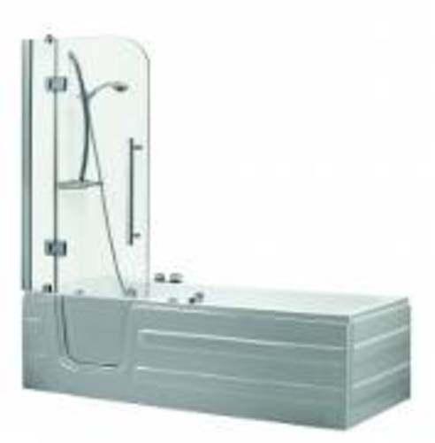 A walk in bath made from acrylic. It is a combination bath/shower suitable for new installations and retro fits. It features a sitting ledge and an inward opening side door.