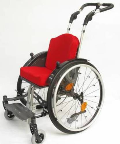A rigid manual wheelchair with aluminium frame. It is self-propelled using a rear wheel action drive. Designed for very young children, it has both tilt-in-space and reclining backrest. A range of options and accessories are available. This wheelchair is crash tested.