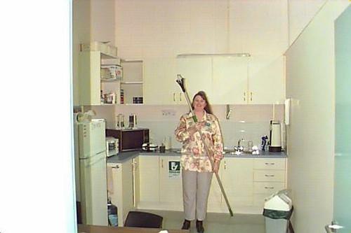 A cleaning aid consisting of a length adjustable aluminium pole which has various clip on cleaning attachments. The cleaning attachments consist of nylon locking devices with spring buttons. The pole has nine sizes available, and all can extend in two or three stages. Attachments available include washing strips, lambswool covers, light globe remover, boat hook, floodlight remover, pipe brush, cobweb broom and various pole adaptors.