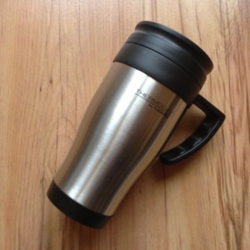 A travel mug / tumbler that is dedicated to maintaining an optimum temperature using vacuum insulated technology. The mug offers heat and cold retention. It has a screw top lid, sliding lock, ergonomic handle and solid construction. This mug may assist people who have limited grip strength/function. Keeps liquids hot for up to one hour and cold for up to two hours.