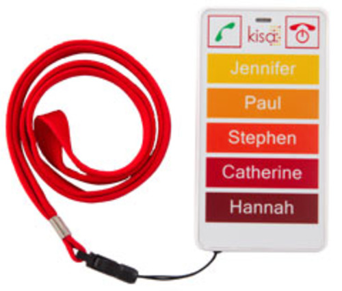 A basic, 'candybar' style mobile phone that uses the Vodafone and Telstra Networks on the 3G and 4G network. It has GPS capability and can have up to 10 personalised contacts programmed by the supplier. Contacts can be shown as a photo, text or braille. There is an SOS button feature and the back panel can be personalised to show emergency contact details, allergies etc. It cannot send or receive texts. The SOS button has to be pressed 4 times to activate an audible alarm, the phone will also switch to a speakerphone and then will call 000.