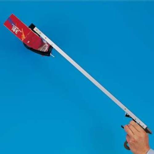 This reacher has a plastic pistol style trigger handle with a plastic claw for gripping objects. It is operated by a string threaded through the aluminium shaft from the handle to the claw. The inside of the jaw is lined with rubber to aid grip. Also features a magnetic tip for picking up metal items.