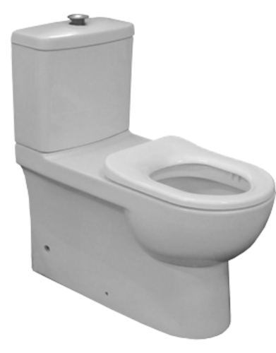 A close coupled, wall faced, vitreous china toilet suite with a high seat height. Raised dual flush controls. Seat has lateral stabilisers.