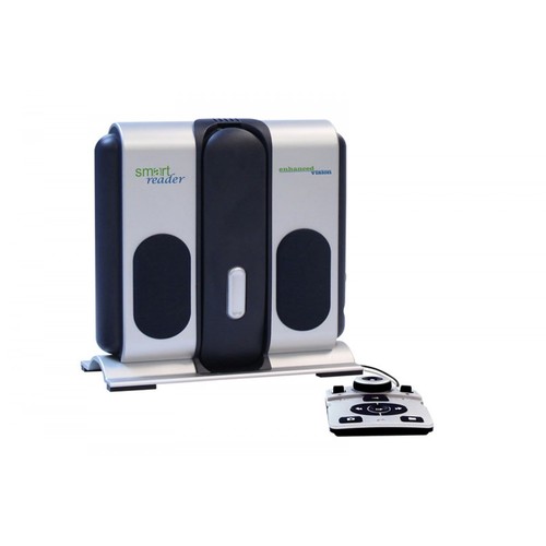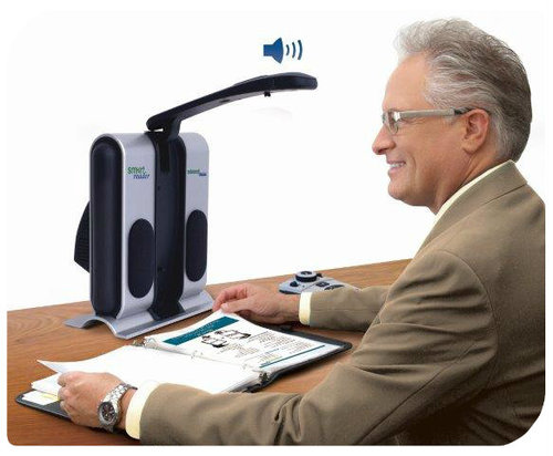 A lightweight, portable, full page OCR system for reading magazines, books, newspapers and other printed material. Once the document is positioned and the button is pressed the smart reader begins reading aloud. The smart reader can be connected to the 13.3" portable battery operated monitor, or any desktop monitor or TV and the enlarged image can be viewed in capture mode. This enables the person to read along and listen as the smart reader reads aloud.