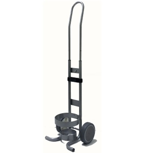 A lightweight aluminium trolley designed to transport compressed gas cylinders. It has a safety strap to hold cylinder firmly in place, wide, durable wheels for stability and a height adjustable handle. Suits C,CD & D size cylinders.