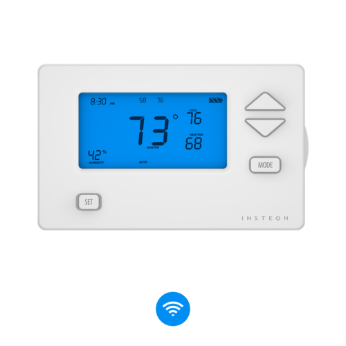 Thermostat that when used in conjunction with an Insteon Hub can be remotely monitored and controlled using a smart phone or tablet. It can control temperature, duct dampers and ceiling fans. Automatic schedules can be created for the 7 days of the week. Available as a thermostat or an adapter which can be attached to some Venstar or Totaline thermostats.