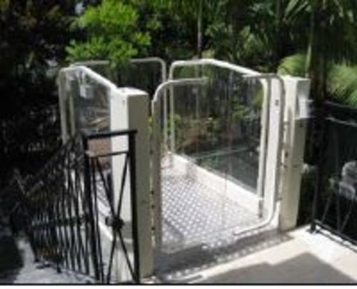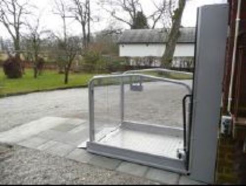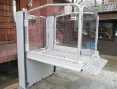 A platform lift which can be installed against a wall or with its own free standing frame. Doors are manually operated. Moving parts are housed within the frame to reduce exposure. Suitable for domestic and commercial settings, indoor and outdoor. No pit required.