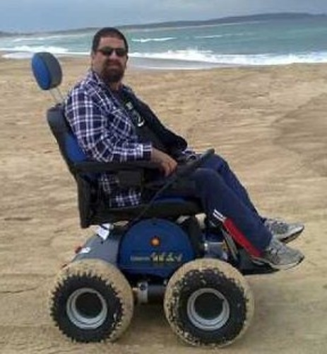 Model Beach Special Edition 4x4 Powered Wheelchair: All terrain powered wheelchair with auto-adjusting seat