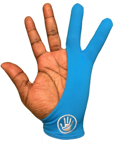 This two finger glove protects the forehand from being detected by the touchscreen of a tablet device when using a stylus. It is available in small, medium and large sizes and in a range of colours.