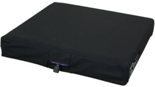 This cushion features a combination of memory foam and air compartments. An air valve is used to make adjustments to the cushion. It features a breathable, washable cover. Suitable for use by clients at medium risk of pressure injuries.
