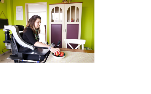 A dynamic arm support designed to assist with daily living activities, such as eating, drinking and typing, for people who lack muscle force. It reduces the effort required to make arm movements. It can be mounted to a wheelchair.