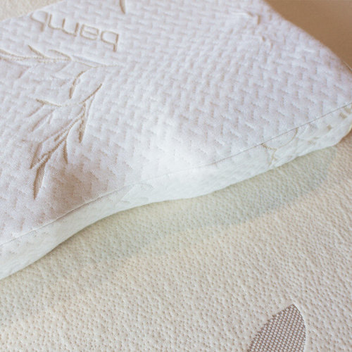 A latex pillow for use when sleeping on the back. It aims to keep the head in line with the neck. Comes with a removable bamboo quilted cover. One model only.