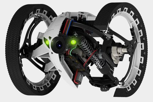 The Parrot MiniDrone Jumping Sumo is a robot controlled by an app. The app is available on Android, iOS and Windows phone. Using a wifi connection, the user to drive the robot, make it jump in the air and view the world around the robot through an on-board camera.