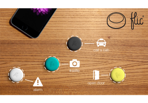 A Bluetooth button which connects to a smart device to allow wireless control. It has three trigger actions which allows one button to control three functions or series of functions. It works with functions on your phone as well as selected home automation products. It is compatible with iOS and Android devices with a free app from iTunes and Play Store. Multiple Flic buttons can connect to a single smart device.