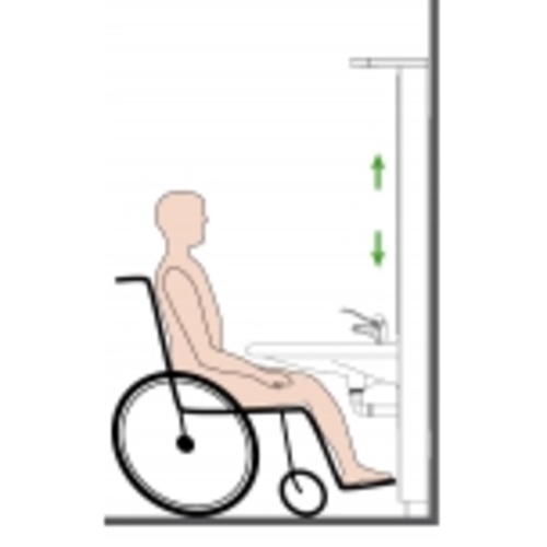 FUNCTIONALITY-It provides easy and direct access in a seated position, compared to side access with a standard, non-adjustable washbasin/vanity. Making it easier, safer, less stress and strain for users and/or carers. Designed for frequent or daily adjustment, individuals or multiple users with varying abilities or equipment requirements.
